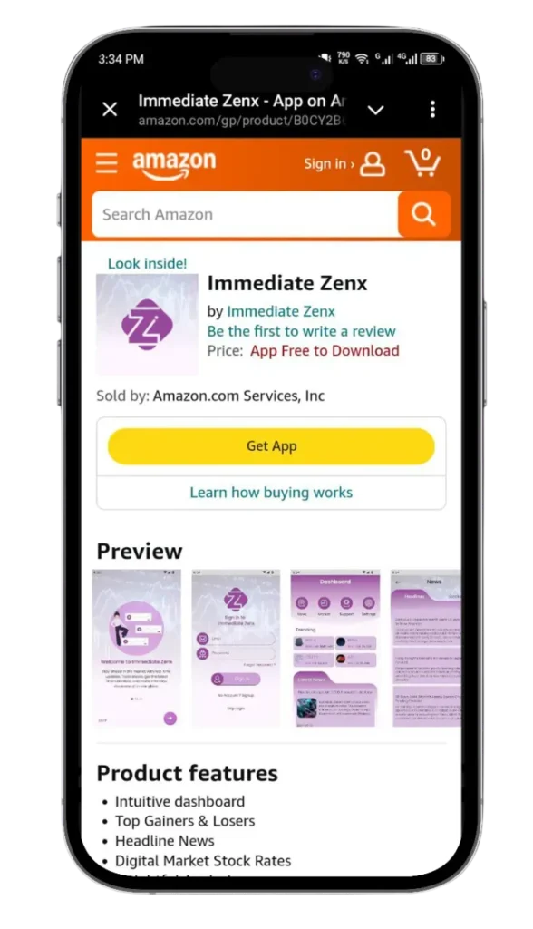 Search for app “Immediate Zenx ” and click